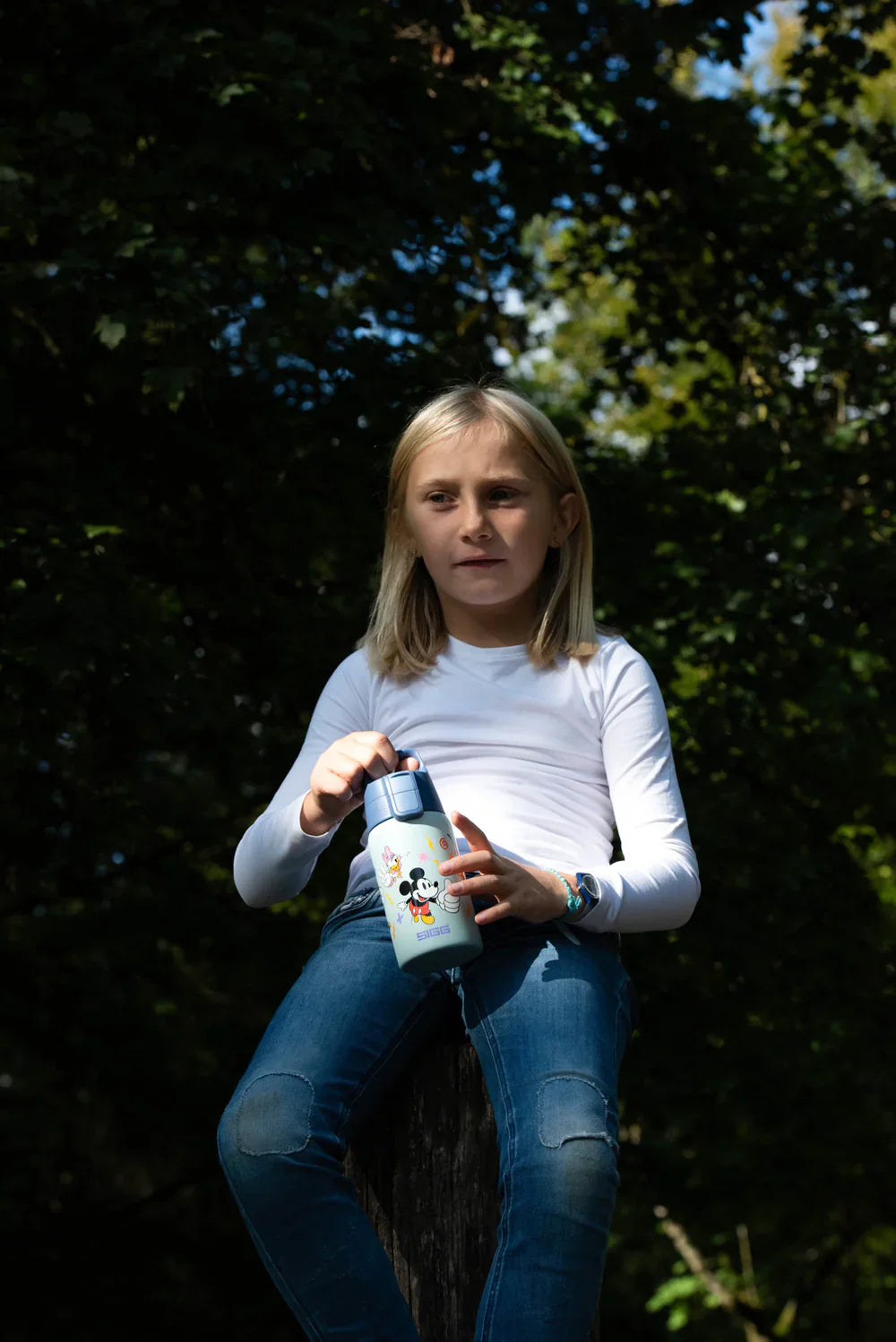 Accompagne Mickey et ses amis dans leurs aventures et célèbre le prochain 70e anniversaire de la souris emblématique. Car même les vrais fans de Disney ont toujours besoin de boire suffisamment en route. Notre nouvelle bouteille pour enfants avec le One Top sera certainement ta préférée ! La gourde Shield One à simple paroi est en acier inoxydable 18/8. Tous les matériaux sont de qualité alimentaire et exempts de substances nocives, telles que les substances à activité œstrogénique et les phtalates, pour une consommation sûre. La fermeture innovante One rend la gourde particulièrement confortable : porter, ouvrir, boire, fermer et sécuriser se font aisément d'une seule main ! Prêt pour une nouvelle aventure ?