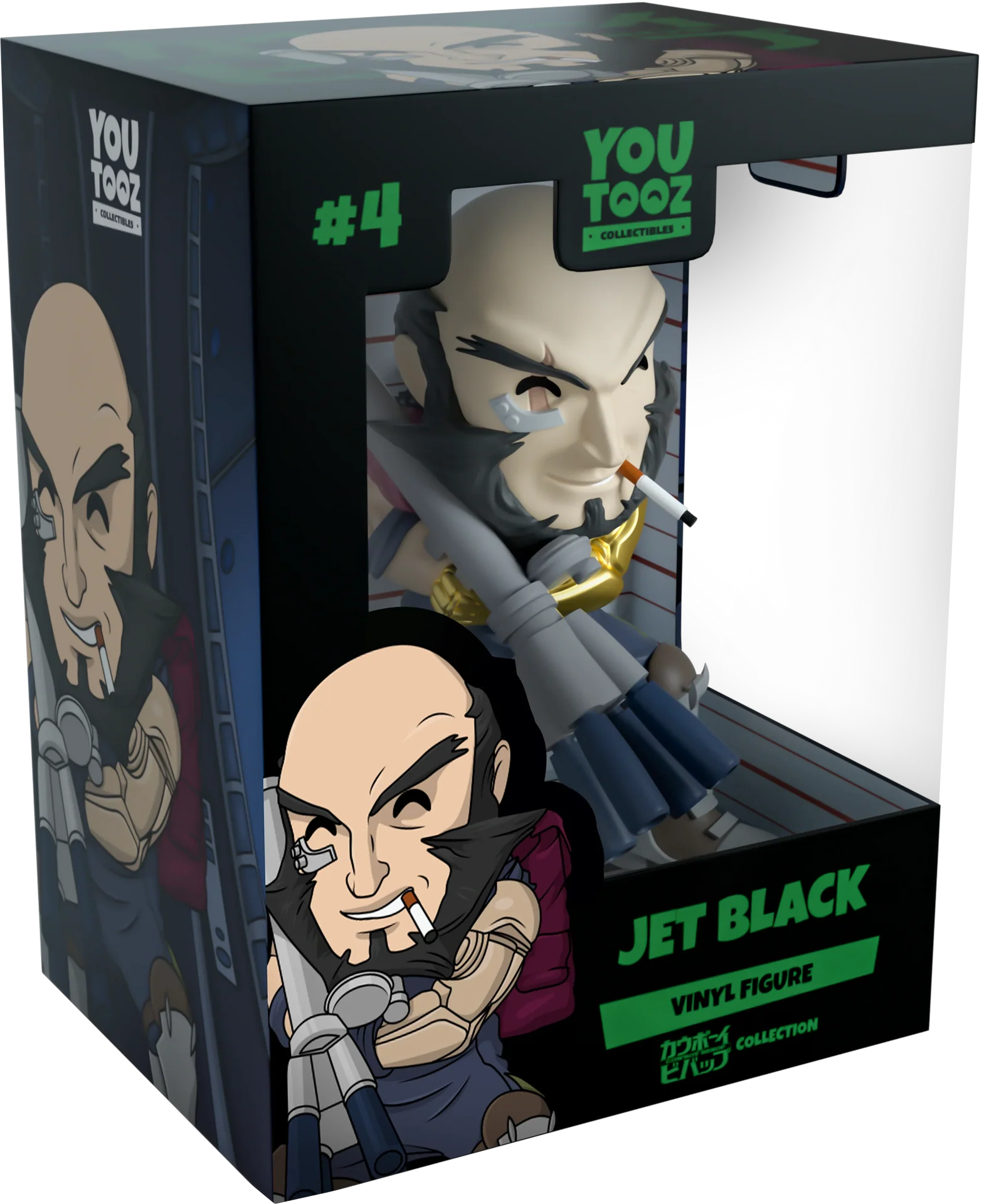Ich bin der schwarze Hund, und wenn ich zubeiße, lasse ich nicht mehr los. Jet Black ist der Kapitän der Bebop und der Anführer ihrer Besatzung. Er ist als der schwarze Hund bekannt! Der 12,7 cm große Jet Black hält einen Flammenwerfer in beiden Händen. Sein Roboterarm ist so geformt, dass die Rillen und Einzelteile sichtbar sind. Aus seinem Mund ragt eine Zigarette, die sein freches Grinsen vervollständigt. Er trägt graue und braune Stiefel. Sein Gesicht zeigt die Narbe über seinem Auge und die Metallplatte, die seine Verletzungen zusammenhält. Seine doppelwandige Fensterbox ist so illustriert, dass sie das Innere der Bebop zeigt, als der Strom abgeschaltet wurde. Dieses Sammlerstück wird in einer schützenden, geprägten, matten Außenhülle geliefert, die von der Eröffnungssequenz von Cowboy Bebop inspiriert ist.