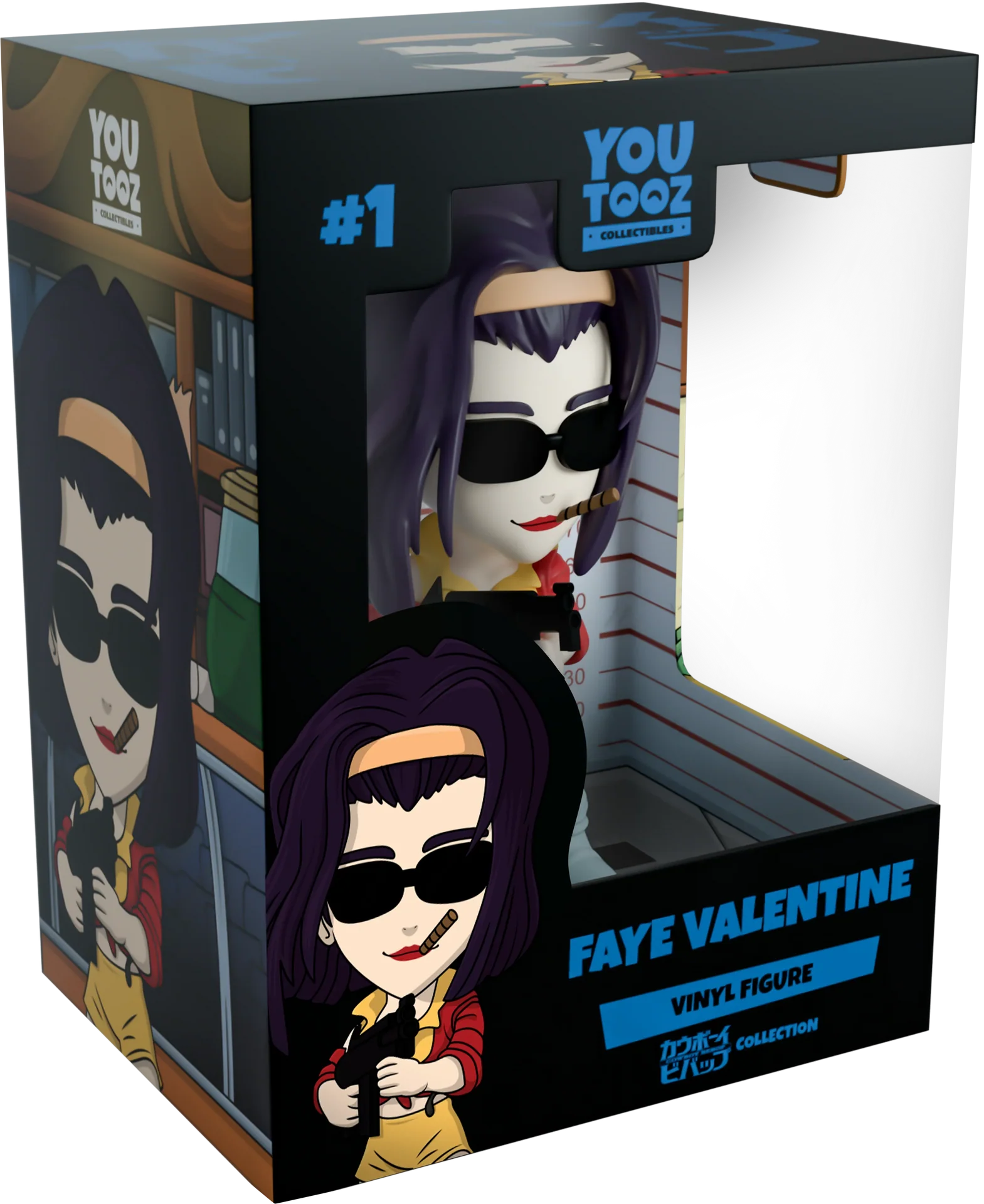 You know the first rule of combat? Shoot them before they shoot you. After being cryogenically frozen for 77 years, Faye Valentine crosses paths with Team Bebop and makes some unlikely friends! Captured holding a machine gun in both hands, Faye means business. This go-getter wears yellow shorts, a yellow crop top, and a red jacket. Dark-tinted sunglasses add to her cool attitude. Her double-walled window box is illustrated to show the scene outside a store where a shootout has taken place. This collectible comes in a protective, embossed matte outer sleeve inspired by the opening sequence of Cowboy Bebop.