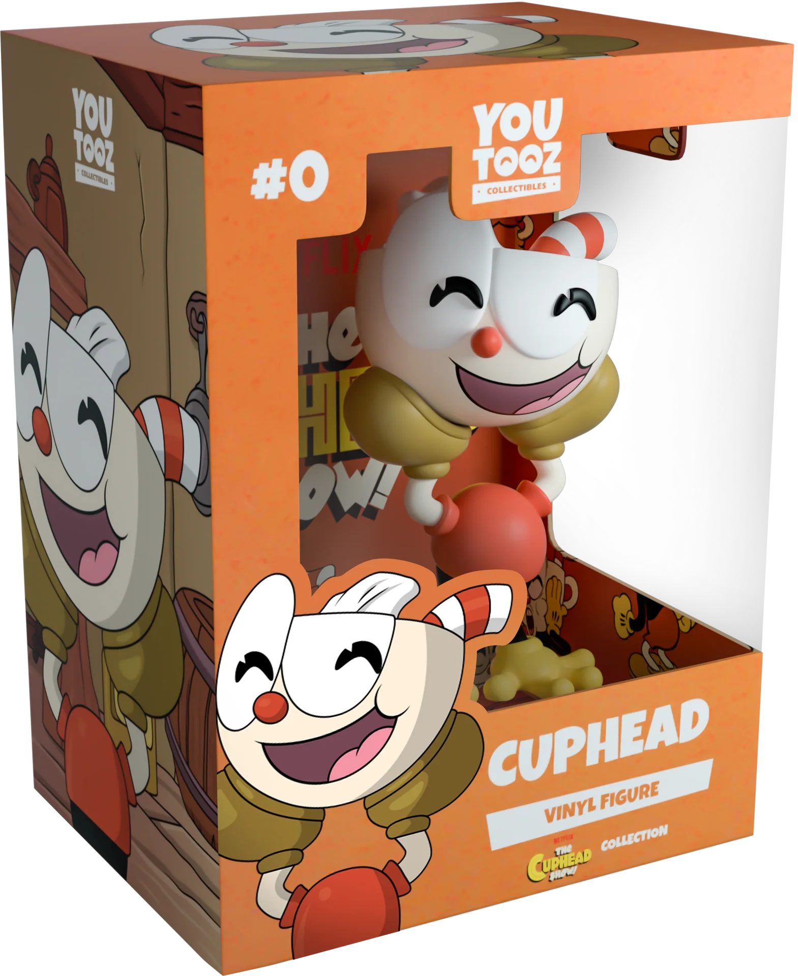 Cuphead torna a Youtooz! Alto 11,7 cm, qualcosa in lui sembra un po' diverso... Vestito con una maglia rossa e pantaloni neri, Cuphead è in posa con le scarpe marroni sollevate in aria, che si tengono saldamente la testa. Ha un grande sorriso stampato in faccia e una cannuccia rossa e bianca che spunta decorativamente. Una piccola quantità di liquido gocciola dalla cima della tazza, dando alla figura un senso di movimento. Si regge saldamente su entrambe le mani, che indossano guanti gialli. L'esterno è una planimetria dell'interno della casa di Cuphead. L'interno è un motivo ripetuto di Cuphead che assume diverse espressioni e pose su uno sfondo rosso. Questo oggetto da collezione è confezionato in una custodia esterna protettiva opaca e goffrata e in una protezione in plastica di dimensioni personalizzate per la massima protezione durante la spedizione.