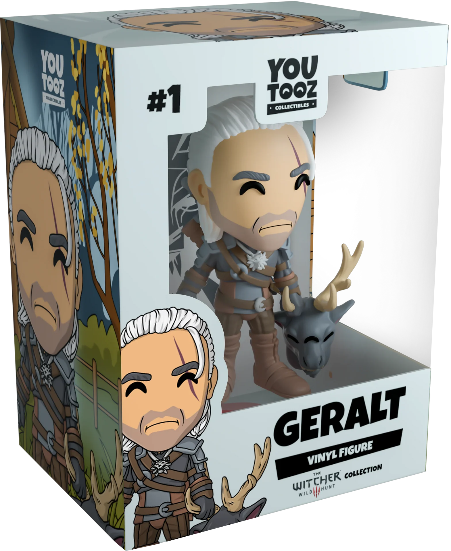 Du haut de ses 11,7 cm, Geralt de Riv fait son entrée sur Youtooz ! Coiffé selon sa célèbre coiffure mi-haute mi-basse, une mèche blanche pend sur le côté gauche de son front. Une vive émotion se lit sur son visage, et une cicatrice sombre lui barre l'œil gauche. Sa tenue, faite de cuir et d'acier, est agrémentée d'un collier de Sorceleur porté autour du cou. Dans sa main droite, il tient une épée d'acier, tandis que dans sa main gauche, il tient la tête d'un monstre que Geralt a vaincu. Sanglée sur sa poitrine et suspendue dans son dos, une autre épée est prête à être utilisée dès que nécessaire. L'extérieur de son emballage à double paroi représente les bois brumeux où Geralt marche, tenant la tête du monstre. L'intérieur présente un fond bleu clair à blanc délavé, avec des flammes rouges vers le bas et le symbole de The Witcher imprimé au centre. Cet objet de collection est livré dans une pochette de protection mate et gaufrée, ainsi que dans une protection plastique aux dimensions personnalisées pour une protection optimale pendant le transport.