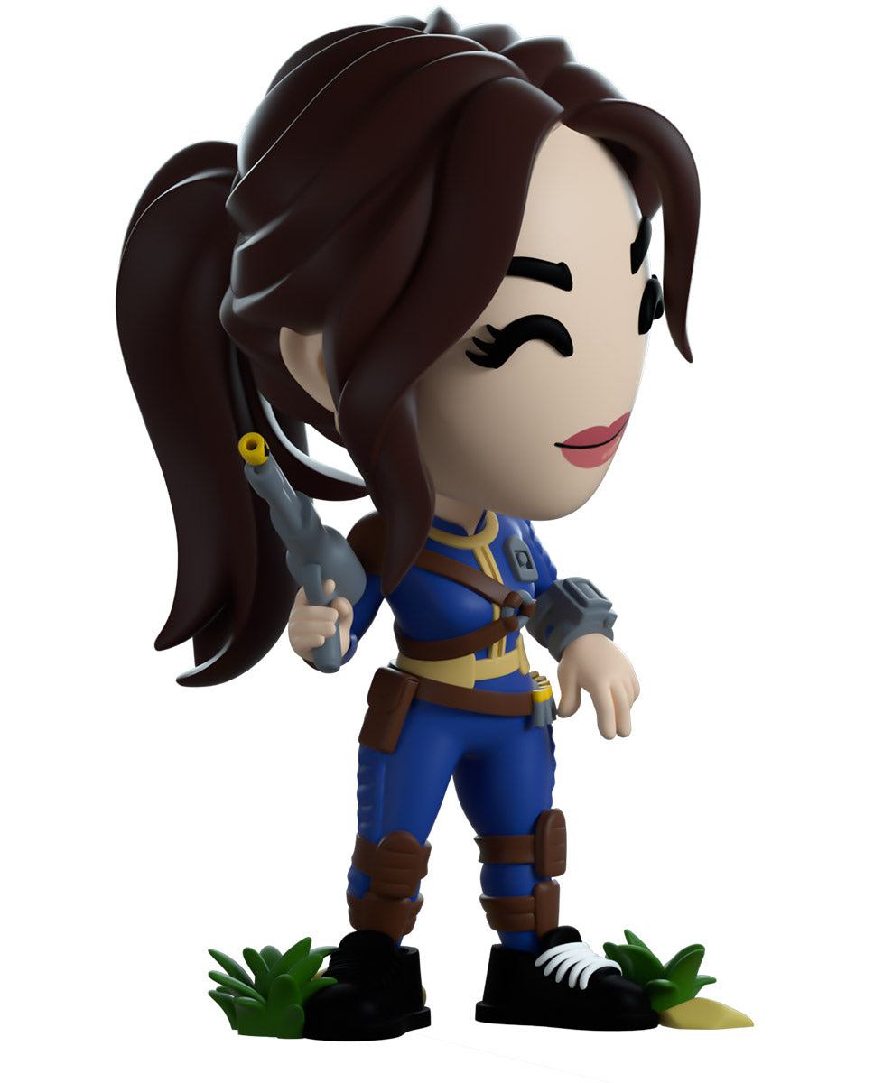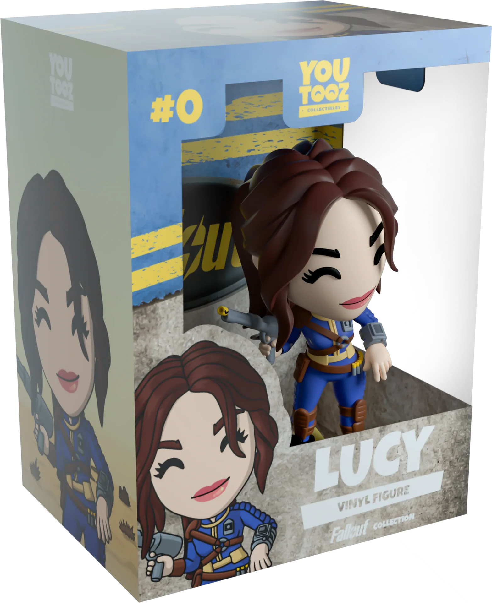 Lucy a émergé de la sécurité de son coffre-fort pour explorer le tout nouveau monde de Youtooz ! Penchée sur le côté, du haut de son mètre quatre-vingt-dix, un sourire aux lèvres roses s'étire sur son visage. Ses longs cheveux bruns tombent de chaque côté pour l'encadrer parfaitement, le reste étant tiré en une épaisse queue de cheval qui lui tombe dans le dos. Elle tient un pistolet à long canon dans la main droite et porte une combinaison intégrale bleu et jaune du coffre-fort, recouverte de bretelles marron et d'une armure rembourrée. Son fidèle Pip-Boy gris est posé sur son poignet gauche. L'extérieur de son emballage montre Lucy dans un vaste terrain vague et sablonneux, le regard fixé sur un bâtiment délabré à l'horizon. L'intérieur est en ciment gris sale, peint aux couleurs du coffre-fort bleu et jaune sur le dessus, qui se prolonge sur la pochette de protection, où l'on peut apercevoir sa silhouette à travers la grande fenêtre transparente sur le devant. Cet objet de collection est livré dans une pochette de protection mate gaufrée et une protection en plastique sur mesure pour une protection optimale pendant le transport.