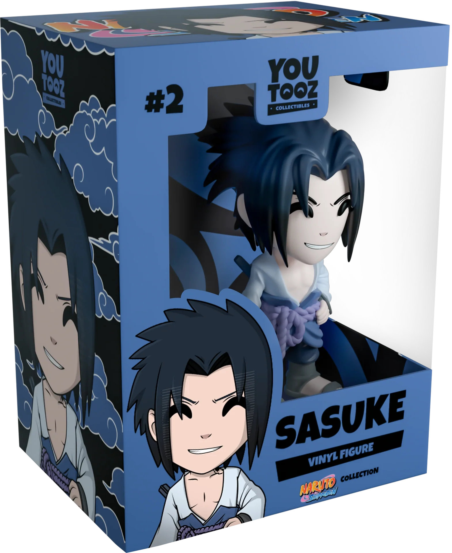Ulubiony antybohater wszystkich debiutuje w Youtooz! Sasuke, mierzący 11,7 cm wzrostu, pozuje z jedną ręką na biodrze i wyższościowym uśmiechem. Jego sięgające ramion czarne włosy są sterczące z tyłu, a grzywka rozdziela się na środku, oprawiając twarz. Jego biała koszula z długim rękawem rozchyla się szeroko, odsłaniając nagą klatkę piersiową i czarny znak pieczęci po lewej stronie szyi. Fioletowa lina jest zawiązana wokół jego ciemnoniebieskiego czekającego ubrania i trzyma miecz na miejscu na plecach. Jest ubrany w ciemnoniebieskie spodnie, ochraniacze dłoni i brązowe sandały z odkrytymi palcami. Zewnętrzna strona jego opakowania jest pokryta pięknymi ciemnoniebieskimi falującymi chmurami na czarnym tle. Podczas gdy wnętrze jest prostym wzorem wirów o różnych rozmiarach. Ochronny rękaw ma chmury wokół zewnętrznej strony i jest podtrzymywany przez logo Naruto Shippuden. Ten przedmiot kolekcjonerski jest dostarczany w ochronnym, tłoczonym, matowym zewnętrznym rękawie i niestandardowym plastikowym ochraniaczu dla maksymalnej ochrony podczas wysyłki.