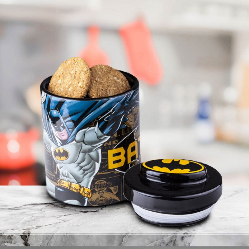 Cette boîte à gâteaux en céramique met en avant le super-héros Batman. Elle possède un couvercle amovible avec un joint en caoutchouc pour préserver la fraîcheur des biscuits.