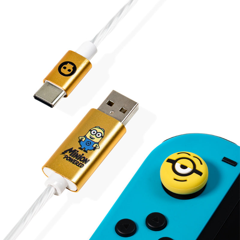 Envie d'avoir une armée de Minions répondant à tous vos besoins ? Vous aurez besoin du câble de charge le plus méprisable pour accompagner votre statut de méchant le plus méprisable ! D'une longueur de 1,5 mètre (5 pieds), le câble LED durable et résistant aux enchevêtrements est l'accessoire idéal pour votre Nintendo Switch et garantit que vous ne serez plus jamais à court de batterie. Sans oublier les poignées de pouce pour aider à améliorer votre précision et vos mouvements pendant le jeu.
