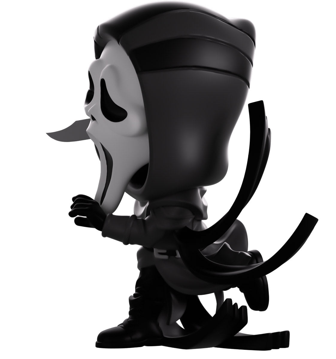 Ghost Face est là et il vise Youtooz comme sa prochaine victime ! Mesurant 4,7 pouces et pointant un doigt ganté vers l'avant d'un air menaçant, vous assurant que vous savez que vous êtes le prochain, il brandit un couteau de chasse imbibé de sang dans sa main droite, fraîchement sorti de sa dernière victime. Avec une cagoule noire ample repliée jusqu'à un point à l'arrière de sa tête et son ouverture reposant autour d'un masque blanc emblématique, sa bouche béante s'étire en un cri allongé tandis que du sang rouge vif coule de son sommet et coule de l'œil enfoncé. des trous. Présentant une silhouette qui imprègne la plus vraie forme de peur, une longue robe en lambeaux enveloppe son corps avec ses extrémités dentelées tourbillonnant autour de ses bras et de ses jambes. L’extérieur de son emballage voit une épaisse couche de sang couler du haut. Alors que l'intérieur est un fond noir avec de fines lignes rouges et des éclaboussures de sang sur ses murs, cela se poursuit sur l'emballage de protection où sa silhouette peut être vue à travers la grande fenêtre transparente située à l'avant. Cet objet de collection est livré dans une pochette extérieure de protection mate en relief et dans un protecteur en plastique de taille personnalisée pour une protection maximale pendant l'expédition.