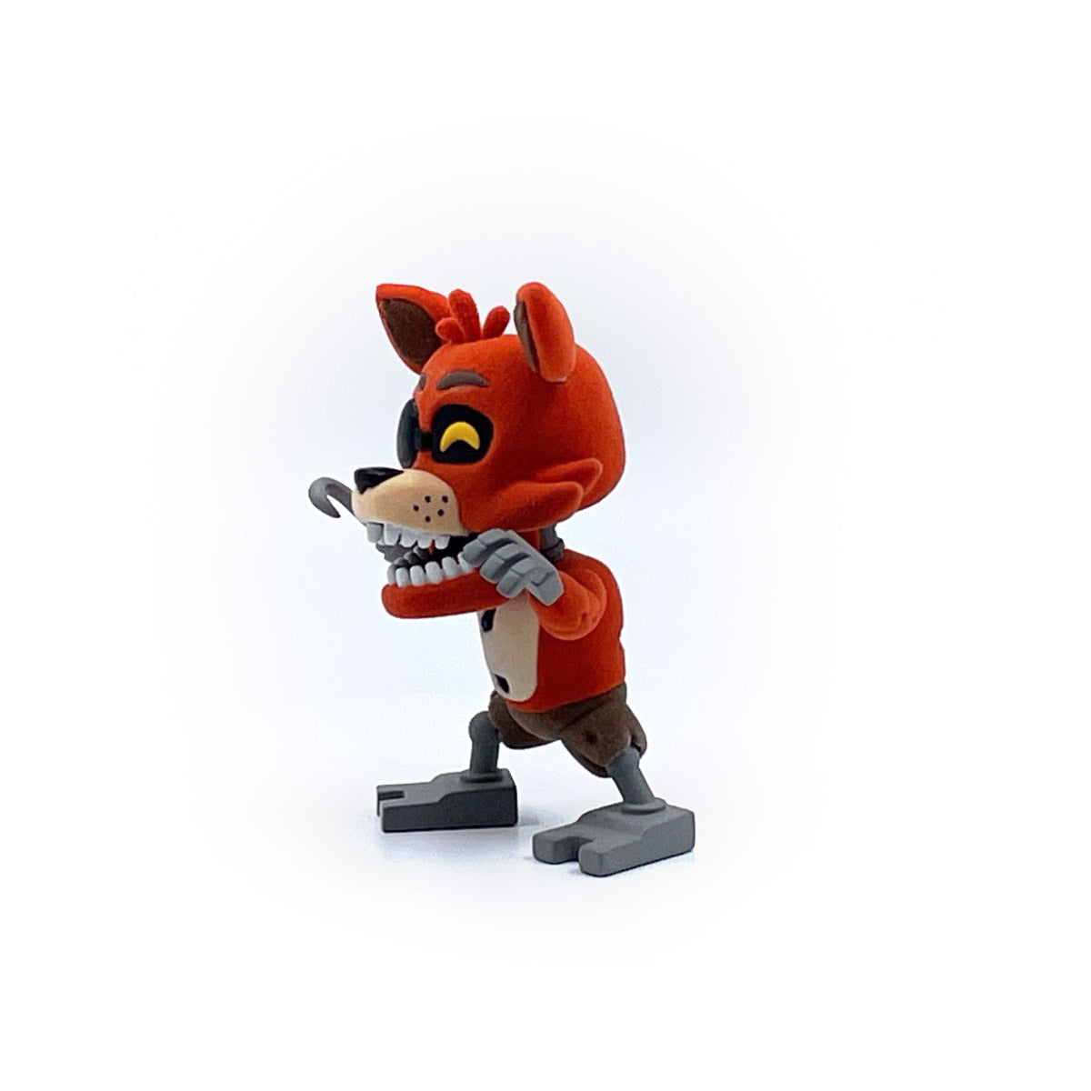 Foxy revient sur Youtooz mais cette fois flou au possible avec un extérieur floqué doux pour accentuer parfaitement son costume animatronique amical, chaleureux, affectueux et certainement pas dangereux ! Se précipitant à 4,3 pouces de hauteur prêt à attaquer avec ses dents barrées et un œil jaune vif éblouissant, il tend la main vers l'avant avec une énorme griffe métallique ouverte et une main pointue en crochet ! Sa fourrure brun rougeâtre est déchirée et en lambeaux alors que des pantalons bruns déchiquetés recouvrent lâchement son endosquelette en métal. Il porte peut-être un cache-œil mais ne vous y trompez pas, il voit encore mieux dans le noir ! L'extérieur de son emballage le voit jeter un coup d'œil à travers les longs rideaux de Pirate Cove, tandis que l'intérieur représente la salle de sécurité du veilleur de nuit. La pochette de protection est un gros plan du mur de la pizzeria et affiche la silhouette de Foxy à travers la grande fenêtre transparente à l'avant. Cet objet de collection est livré dans une pochette extérieure de protection mate et gaufrée et un protecteur en plastique de taille personnalisée pour une protection maximale pendant l'expédition.