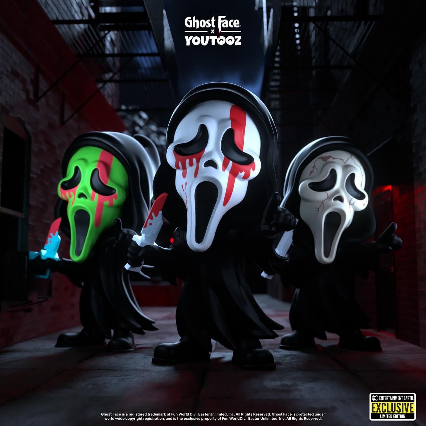 Ghost Face est là et il vise Youtooz comme sa prochaine victime ! Mesurant 4,7 pouces et pointant un doigt ganté vers l'avant d'un air menaçant, vous assurant que vous savez que vous êtes le prochain, il brandit un couteau de chasse imbibé de sang dans sa main droite, fraîchement sorti de sa dernière victime. Avec une cagoule noire ample repliée jusqu'à un point à l'arrière de sa tête et son ouverture reposant autour d'un masque blanc emblématique, sa bouche béante s'étire en un cri allongé tandis que du sang rouge vif coule de son sommet et coule de l'œil enfoncé. des trous. Présentant une silhouette qui imprègne la plus vraie forme de peur, une longue robe en lambeaux enveloppe son corps avec ses extrémités dentelées tourbillonnant autour de ses bras et de ses jambes. L’extérieur de son emballage voit une épaisse couche de sang couler du haut. Alors que l'intérieur est un fond noir avec de fines lignes rouges et des éclaboussures de sang sur ses murs, cela se poursuit sur l'emballage de protection où sa silhouette peut être vue à travers la grande fenêtre transparente située à l'avant. Cet objet de collection est livré dans une pochette extérieure de protection mate en relief et dans un protecteur en plastique de taille personnalisée pour une protection maximale pendant l'expédition.