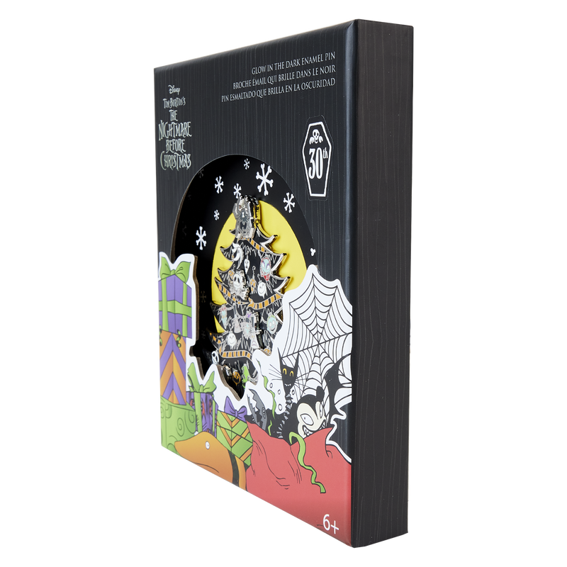 Décorez les couloirs avec des bestioles effrayantes ! La broche d'arbre de Noël phosphorescente de L'Étrange Noël de Monsieur Jack de Loungefly apporte des frayeurs festives à vos repaires de vacances. Prenant la forme d'un arbre, cette épingle est ornée d'une guirlande de vers des sables et de lumières de Noël en forme de citoyens d'Halloween Town. Regardez attentivement et vous verrez une araignée au sommet de l'arbre ! Activez les détails effrayants qui brillent dans le noir à mesure que la lumière du jour s'estompe. Un régal effrayant à tout moment de l'année, cet accessoire est juste l'astuce pour les fans de L'Étrange Noël de Monsieur Jack de Disney Tim Burton.