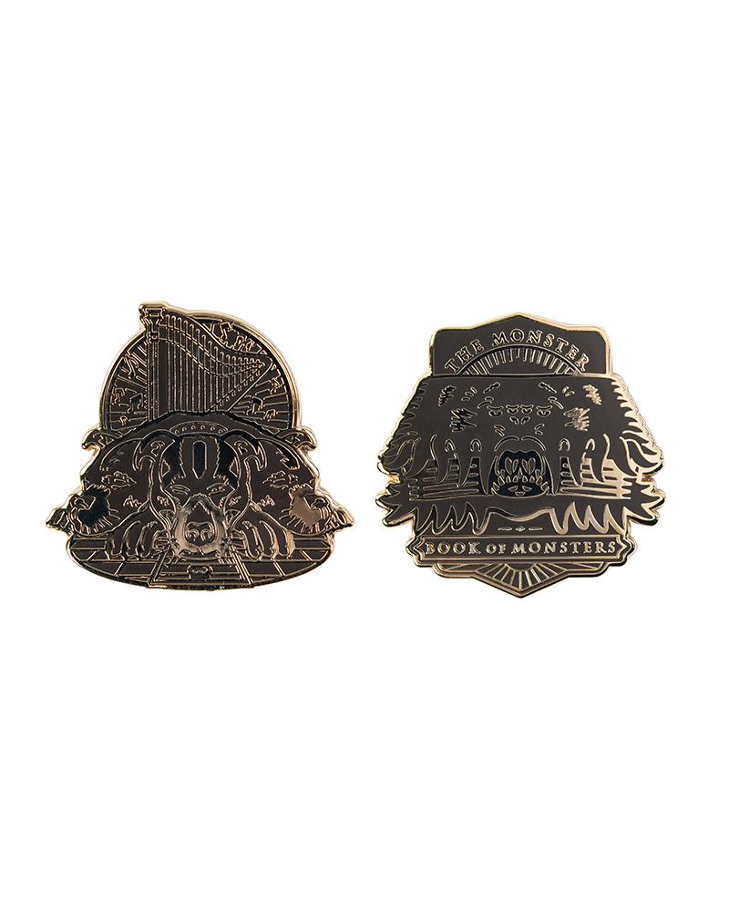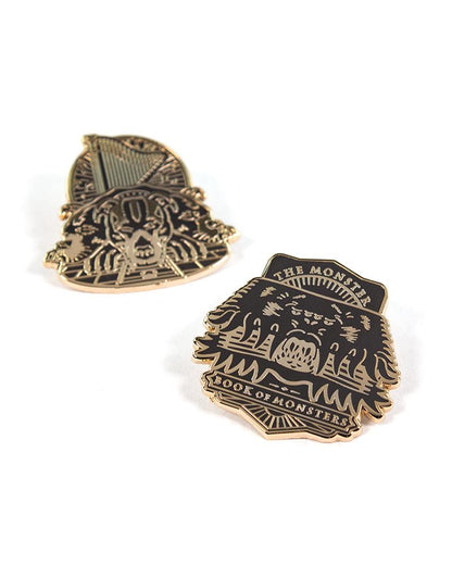 - Deux épingles en métal émaillé dur de qualité supérieure avec une finition brillante avec le Monster Book of Monsters et les motifs Fluffy sur une carte de support.