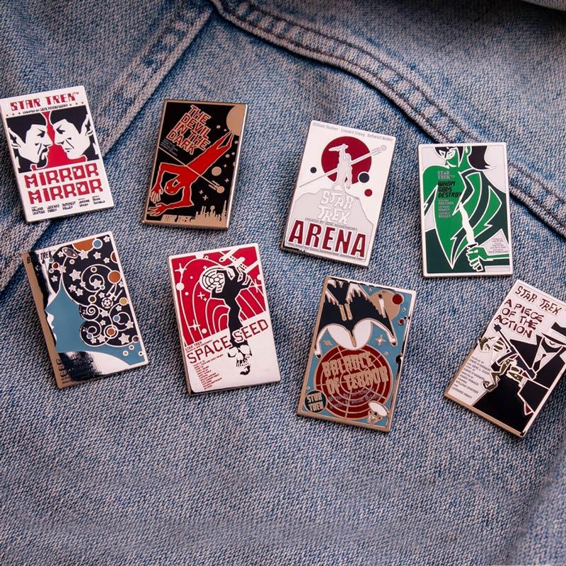 - Deux broches en métal émaillé dur de qualité supérieure avec une finition brillante avec les motifs «Mirror Spock» et «A City on the Edge of Forever» sur une carte de support