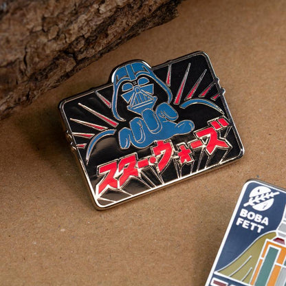 Zoomant sur l'action avec son jetpack et armé d'un pistolet, il est impossible d'échapper au plus grand chasseur de primes de toutes les galaxies, Boba Fett. Le Seigneur Sith, Dark Vador, est également une force avec laquelle il faut compter alors qu'il dirige l'Empire Galactique. Avec des motifs dans une superbe esthétique de style japonais, ces pins en émail de qualité supérieure sont parfaites pour être attachées à votre sac, manteau, accessoires ou pour agrandir votre collection d'objets Star Wars.