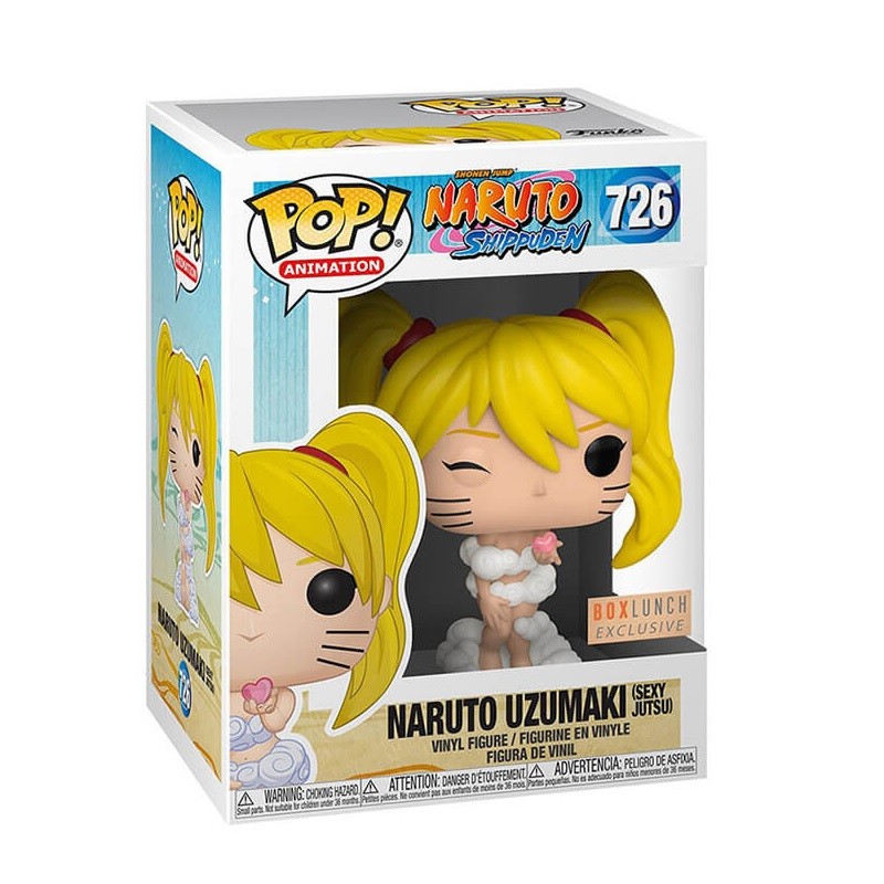 On retrouve ici le Sexy Jutsu de Naruto, une technique qu'il a créée pour faire des farces aux hommes, alors qu'il se transforme en une belle femme. Cette Pop! représente Naruto entouré de nuages, afin que cette œuvre reste PG.
