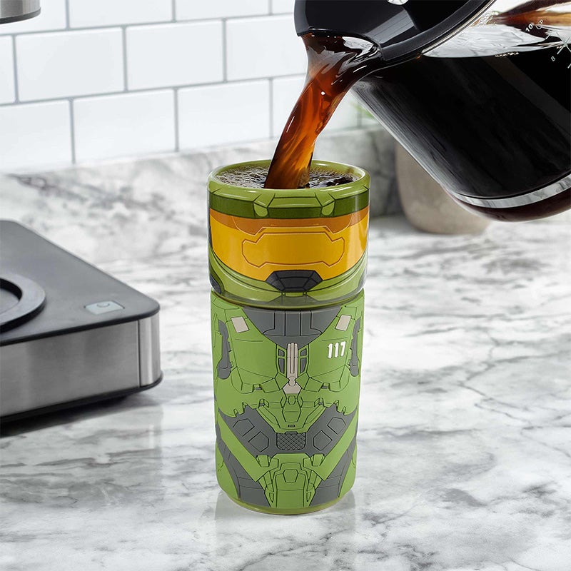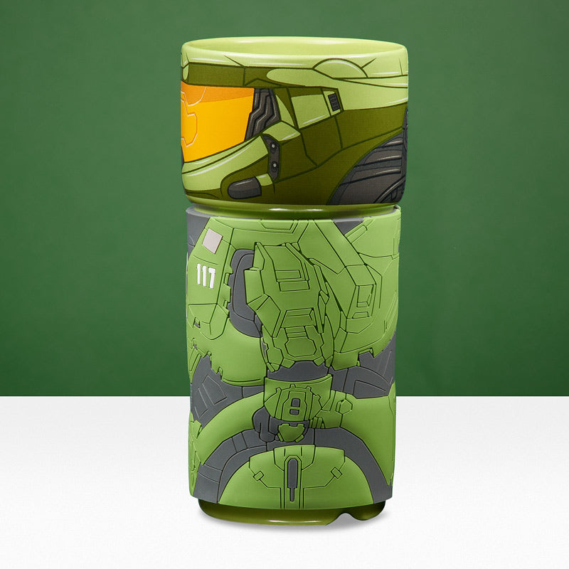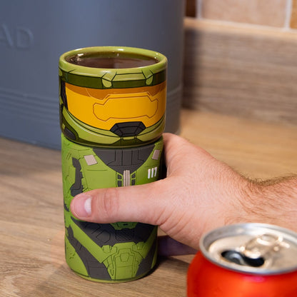 - Tasse de cosplay réutilisable de Master Chief de la franchise Halo.