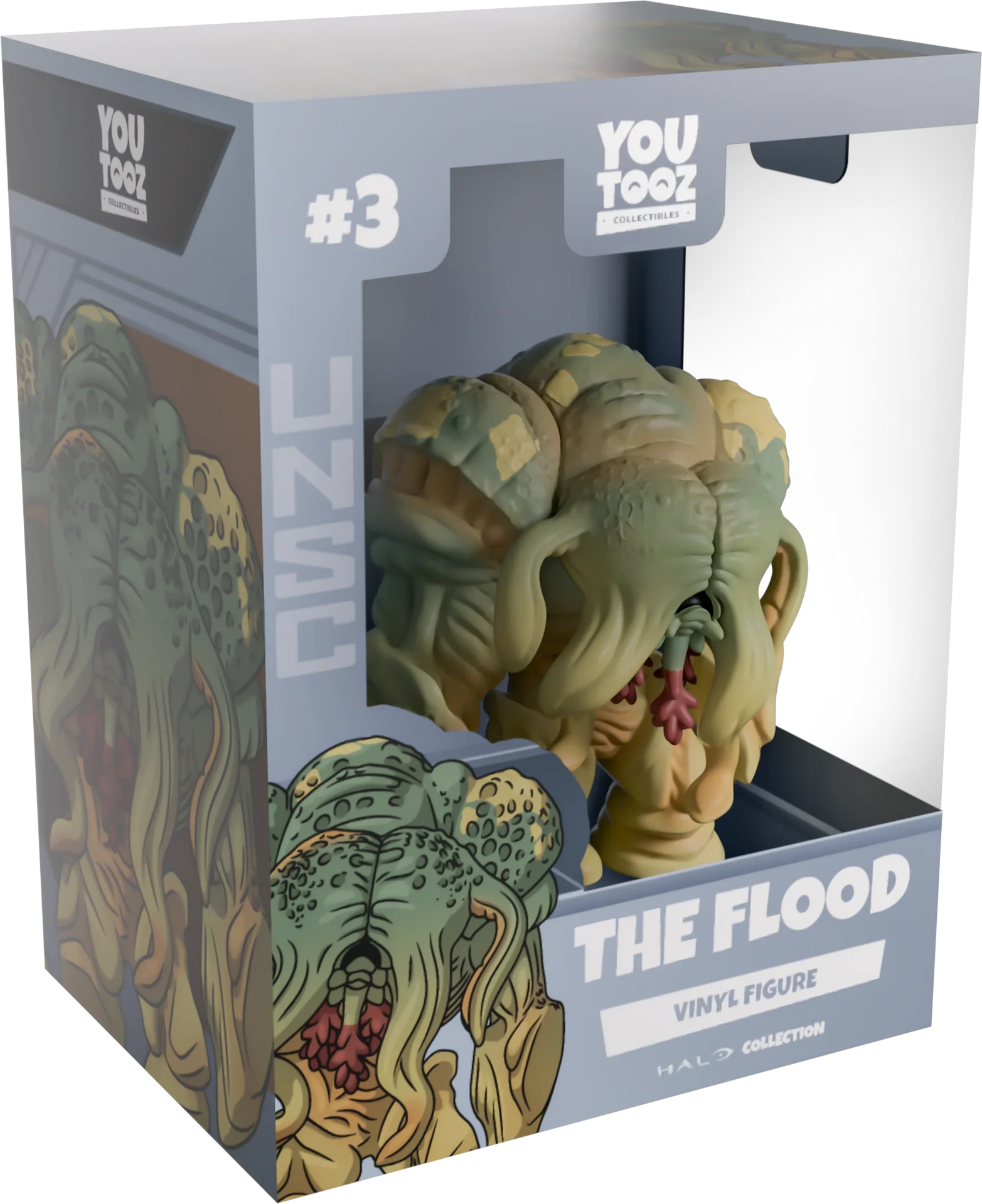 Si une seule spore du Déluge suffit à détruire une espèce, alors Youtooz est sûrement condamné ! Il avance en titubant et se courbe à 11 cm de hauteur avec d'épaisses vrilles tombant de chaque côté d'une « bouche » rouge foncé prête à cracher une explosion de déluge de forme infectée, les épaules massives de leur corps vert et jaune moulé dépassent sur les côtés tandis que les griffes d'un long bras droit traînent sur le sol à côté de leurs troncs épais de jambes. L'extérieur de leur emballage montre le Déluge se profiler au bout d'un tunnel marron foncé, tandis que l'intérieur gris clair est recouvert de motifs inclinés qui s'étendent sur la pochette de protection avec le logo de l'UNSC tandis que leur silhouette peut être vue à travers la grande fenêtre transparente à l'avant de l'emballage. Cet objet de collection est livré dans une pochette extérieure mate, gaufrée et protectrice et un protecteur en plastique de taille personnalisée pour une protection maximale pendant l'expédition.