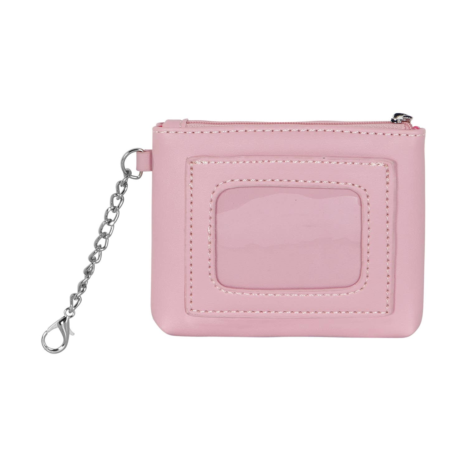 Portefeuille avec un compartiment transparent avant pour les cartes. Compartiment principal à fermeture éclair avec doublure intérieure. Chaîne latérale avec porte-clés.