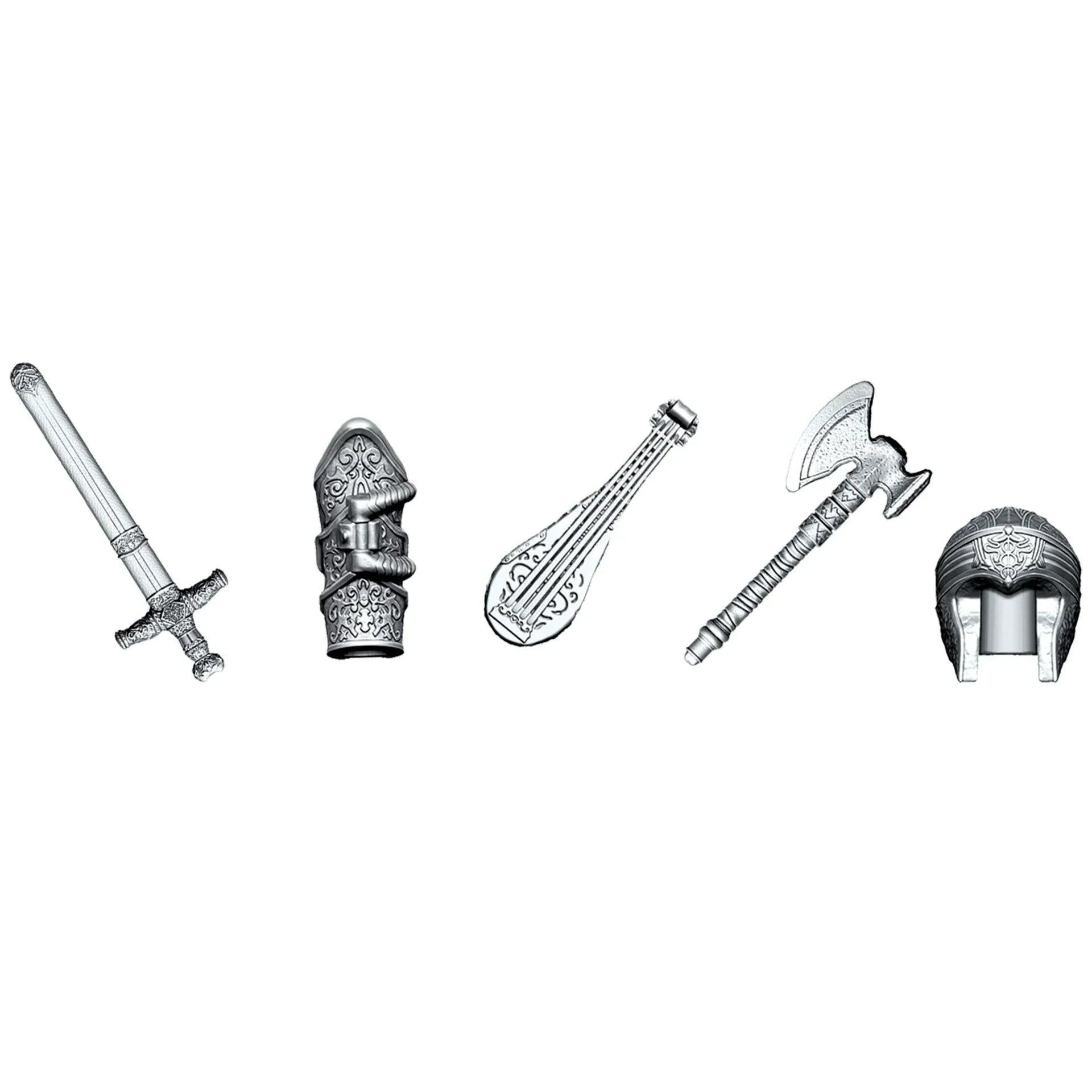 Vključuje igralno ploščo, 5 žetonov, 5 kart likov, 16 kart pustolovščin, 30 kart magije in skrivnosti, 9 kart Mojstra ječ, ovojnico Mojstra ječ, eno 6-stransko kocko, eno 20-stransko kocko, 90 kartonskih zlatih žetonov in vodnik po igri.